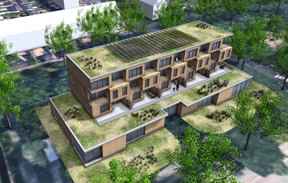 Appartementencomplex bovenop een plint met zorgfunctie